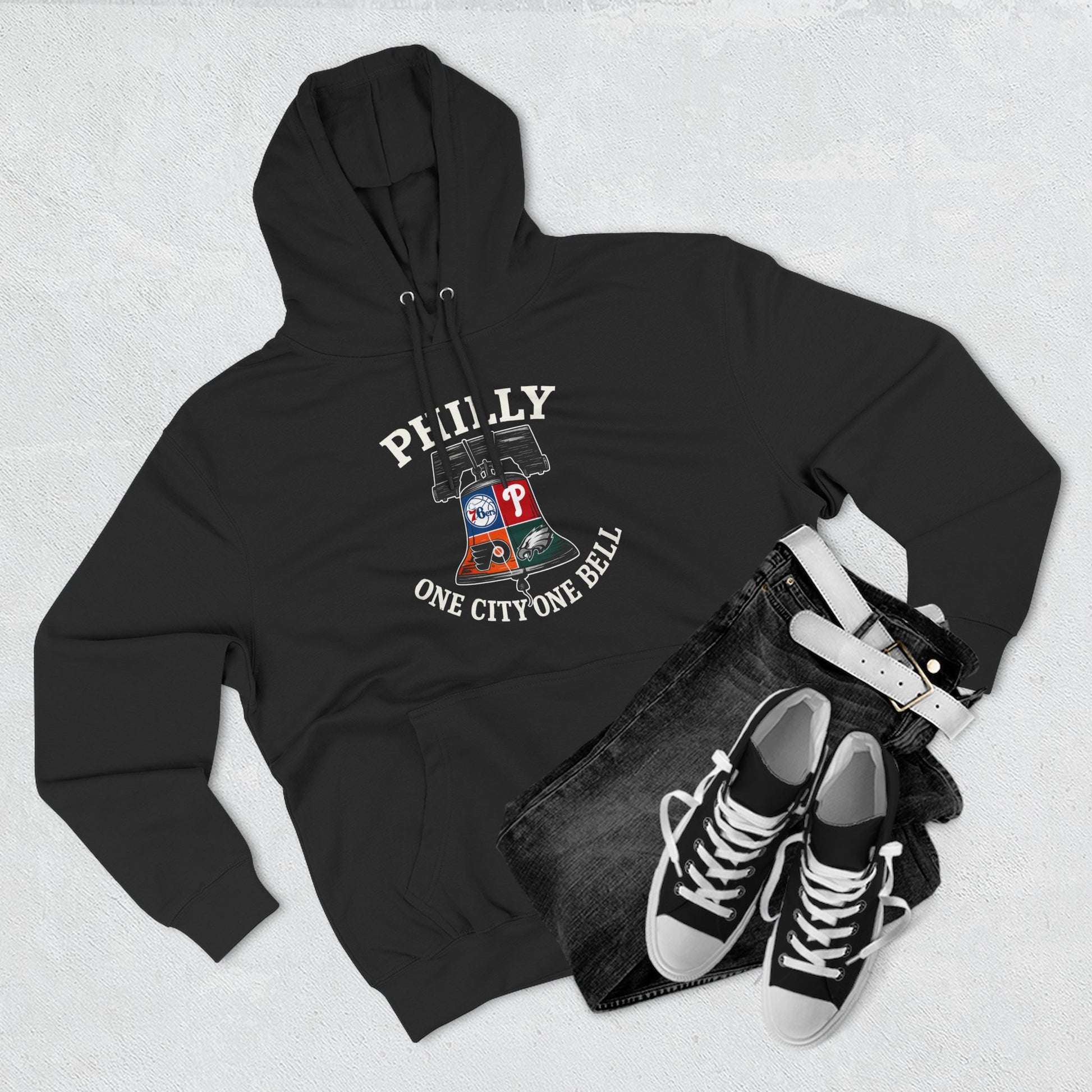 Show your city pride with the Philly “One City One Bell” hoodie — where the Liberty Bell meets the heart of Philly sports.